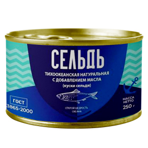 Сельдь тихоокеанская НДМ 250гр ГОСТ, ВРК ООО - Купить в магазине "Светофор" город Елец, ул.Александровская,16